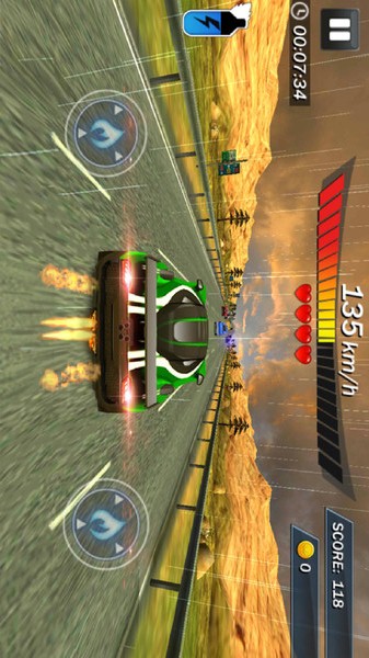 1、手机倾斜转向操控:通过倾斜实现赛车左转或右转,精准控制行驶方向,在复杂赛道中灵活躲避障碍,保持最佳行驶路线。