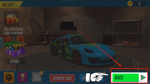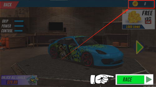 2、查看当前金币储备,了解可解锁的炫酷赛车与升级选项。