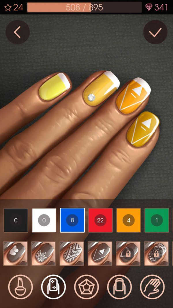 2、潮流趋势追踪:内置实时更新的美甲潮流榜单,玩家可挑战热门款式(如极光甲、棋盘格美甲),提升设计水平的同时紧跟时尚前沿。