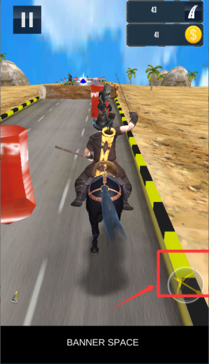 1、游戏开始先熟悉操作,左侧控制马匹左右移动,右侧控制跳跃和下蹲。