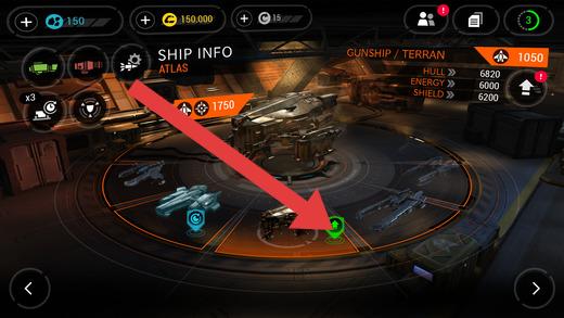 1、在飞船信息界面(SHIPINFO),点击绿色标记的飞船(如ATLAS),进入战斗准备或升级界面。