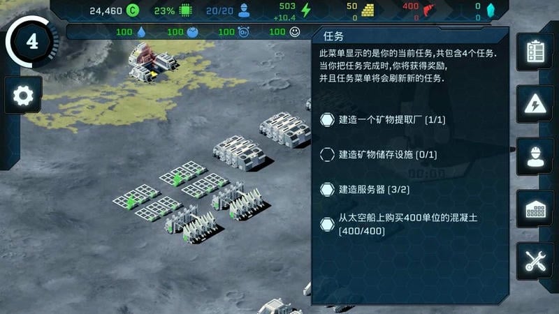 3、扩张发展目标:以扩大殖民地面积为核心目标,在保障居民生存的同时,不断拓展疆域,体验从微小基地到庞大太空城的成长历程。