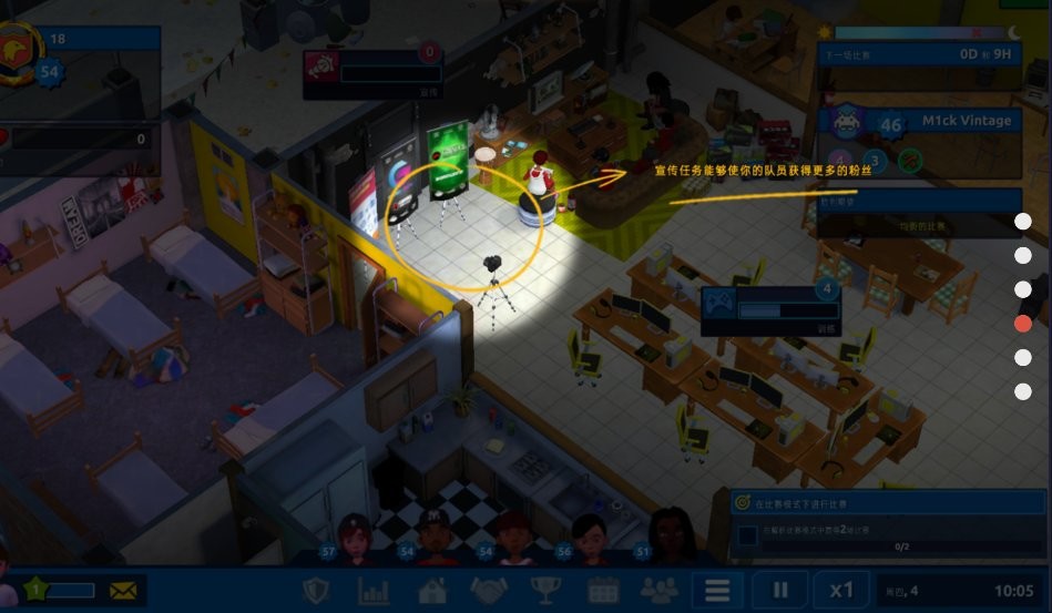 2、游戏中途需兼顾选手训练与团队运营,根据赛事类型调整战术,应对选手状态波动、设备故障等突发干扰,同时拓展商业合作提升收益。