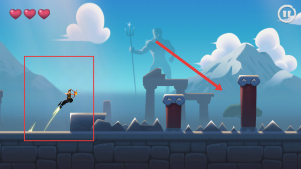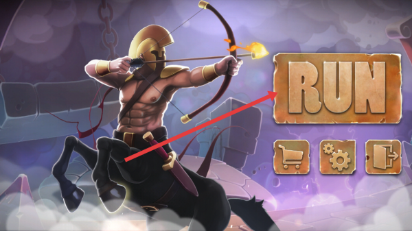 1、点击【RUN】按钮,启动游戏,操控半人马弓箭手,进入古希腊风格场景,准备跑酷射击冒险。