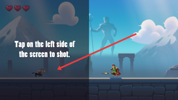 2、游戏中,按提示“Tap-on-the-left-side-of-the-screen-to-shot”,点击左侧屏幕射击,对抗右侧敌人。