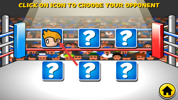 1、进入点击红箭头指向的黄色【播放】按钮,进入【MINI BOXE】开始拳击对战。