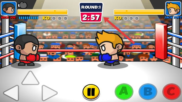 3、关注上方时间,用方向键移动,按【A】【B】【C】键攻击,躲避对手出拳。