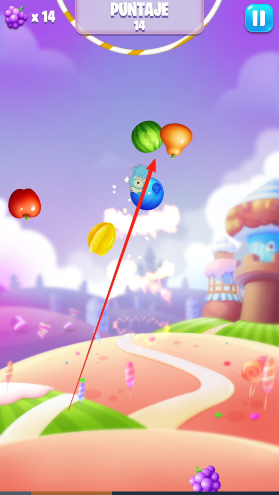 1、萌系视觉体系:Q版水果角色搭配柔和渐变背景,从彩虹糖果路到云朵棉花田,每个场景充满童真幻想,怪兽设计蠢萌可爱,减少压迫感。