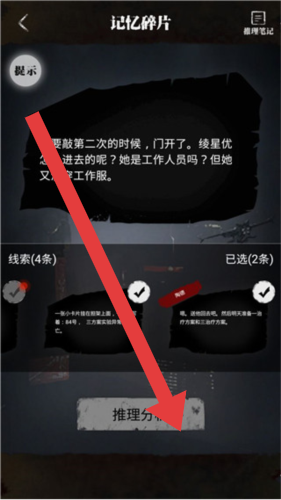 1、探索【记忆碎片】界面,遇到绫星优相关疑问(如进入门的身份矛盾),从已收集线索里筛选关联内容。