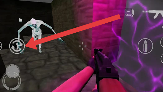 3、遭遇SCP实体,按左侧【转向/攻击辅助】标识操作,灵活调整视角瞄准,精准射击其弱点,提升战斗效率 。