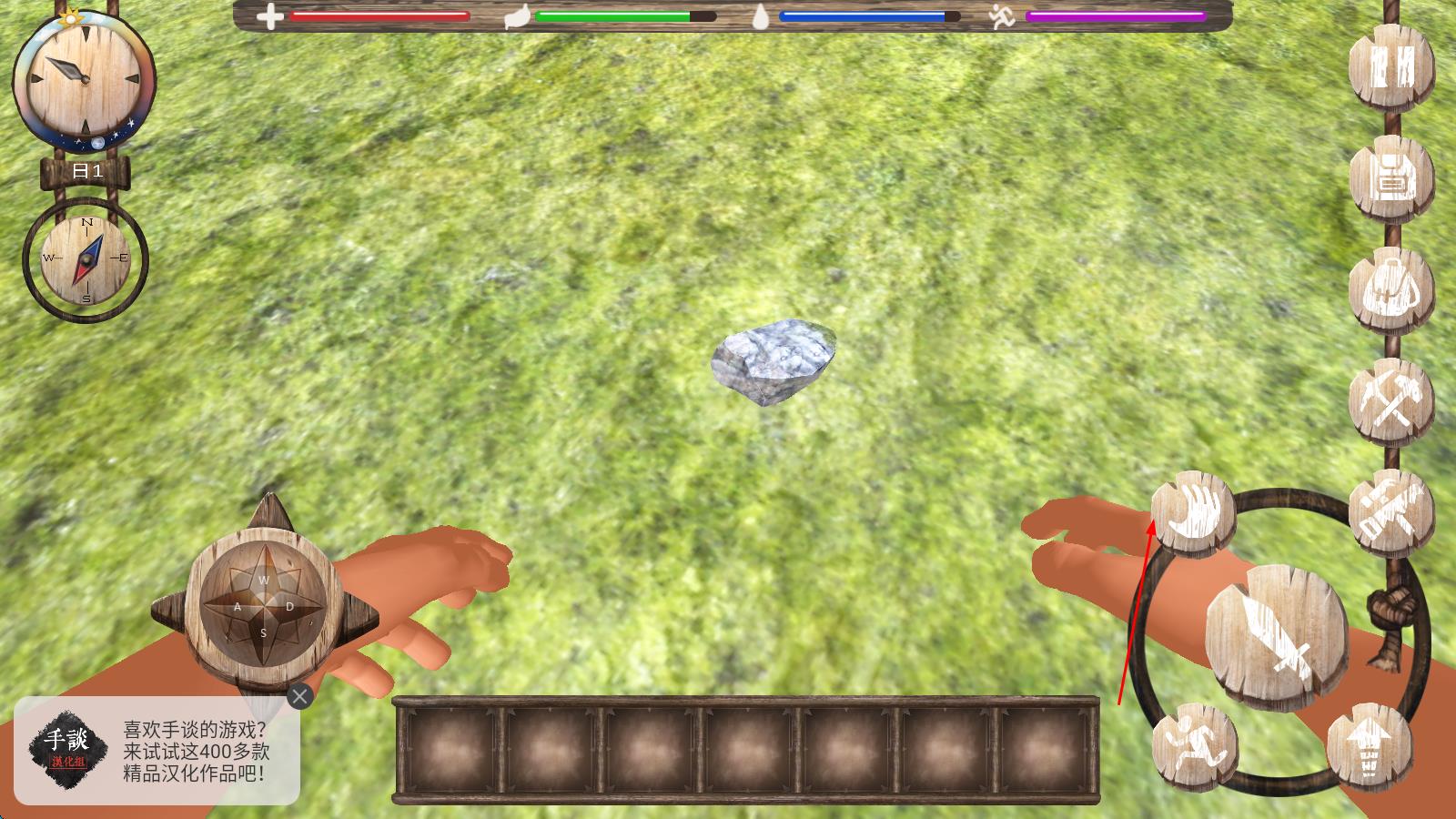 1、初登荒岛,优先靠近树木挥动斧头砍伐,获取木棒与树叶,再用树叶搓制绳子,同步采集灌木上的浆果补充水分,为基础生存奠基。