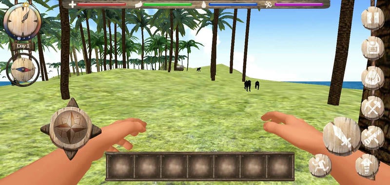 1、低门槛高深度:虚拟按钮操作简易,新手可快速掌握砍树、采集等基础操作,而高级道具合成如铁矿冶炼、皮革鞣制需深度研究材料链,兼具休闲与硬核。