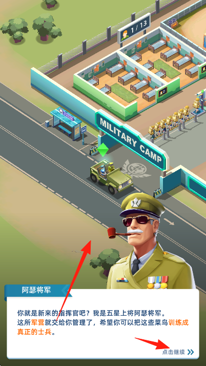 - 闲置军队大亨以军事基地经营为核心的策略模拟游戏,化身为指挥官,在荒芜的戈壁上建立现代化军事基地,通过招募新兵、升级设施、完成任务,逐步打造一支纪