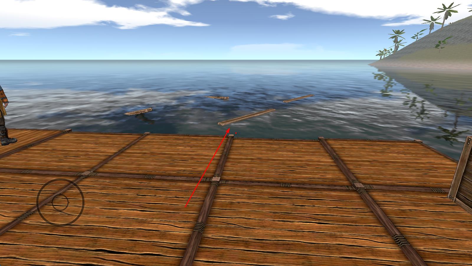 1、初入游戏,用钩子打捞海面漂浮的木板、塑料等材料,优先制作钓鱼竿与净水器,解决食物与饮水问题,同时警惕鲨鱼对木筏的攻击。