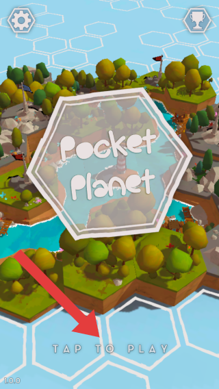 1、这是PocketPlanet的启动界面,画面展示了低多边形风格场景,呈现出一个迷你星球的地貌,玩家可点击【TAPTOPLAY】开始游戏,体验在袖珍星球上的相关玩法。