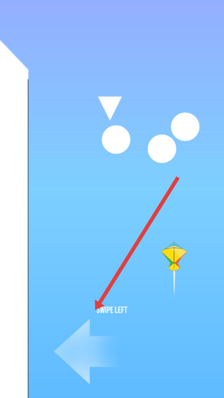 3、游戏中,按“SWIPE-LEFT”提示,向左滑动屏幕,操控风筝躲避障碍(如白色图形),完成飞行任务。