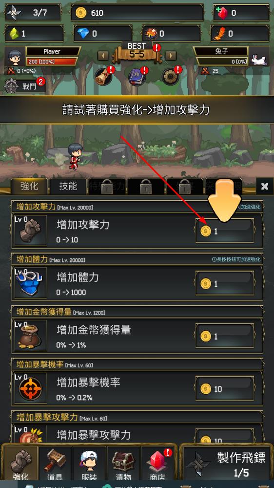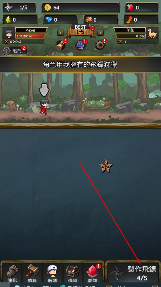 2、战斗中途,长按屏幕蓄力释放角色技能如草药术回血或爆裂箭清场,同时持续合成新飞镖提升火力,应对血量更厚的精英怪与关卡BOSS。