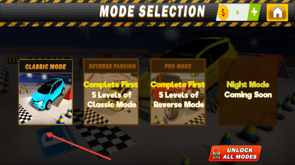 3、进入模式选择,选【CLASSICMODE】,开启经典停车模式关卡。