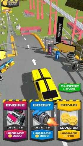 1、在赛前界面,用金币升级【BOOST】,提升赛车加速能力,点击【CHOOSE LEVEL】来选关卡。