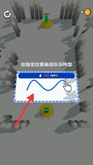 1、在指定绘图区,按示例线条画出阵型,消耗颜料召唤蓝色士兵。