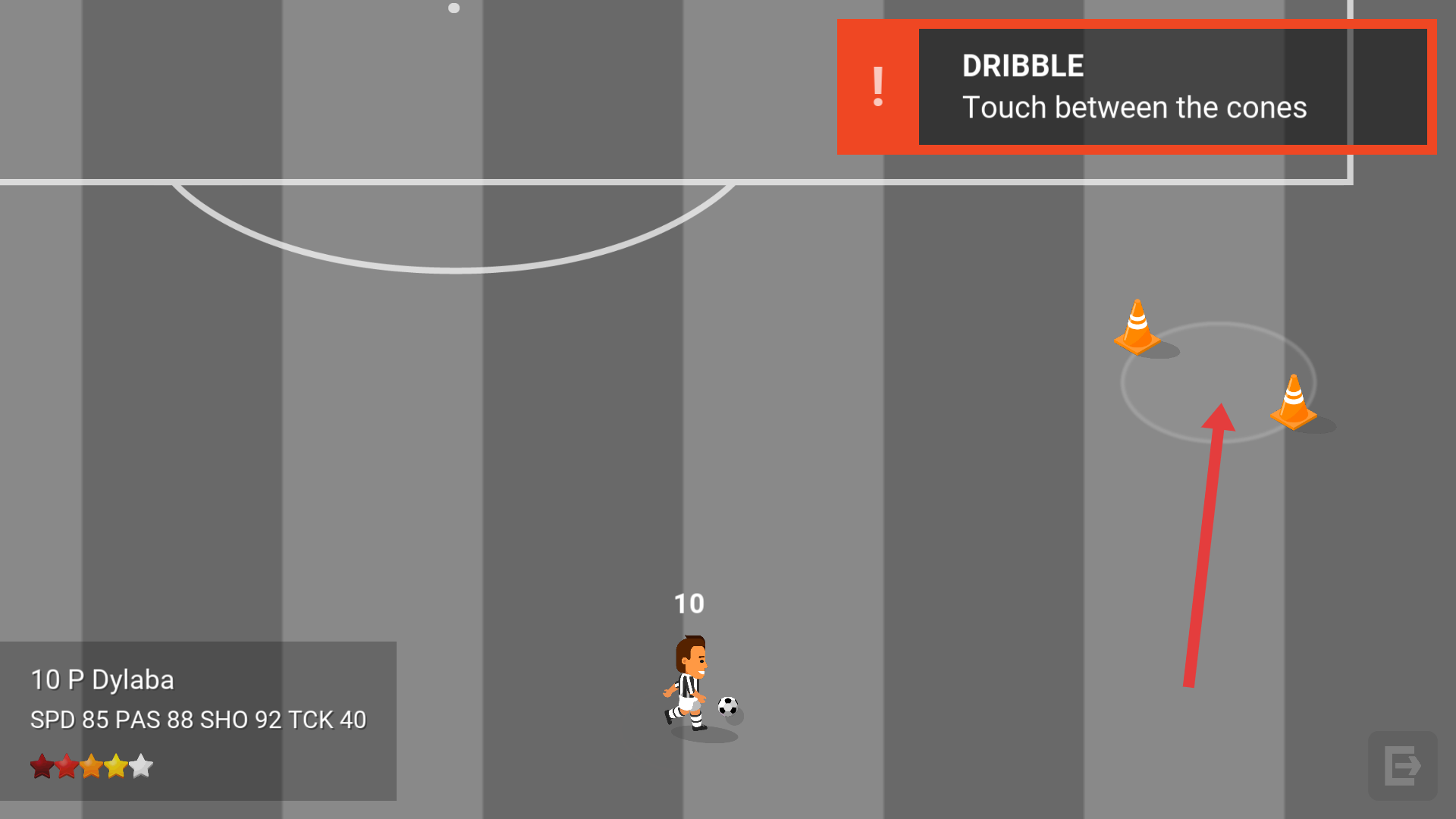 2、按引导提示操作,点击两个障碍物之间区域实现穿插过人。