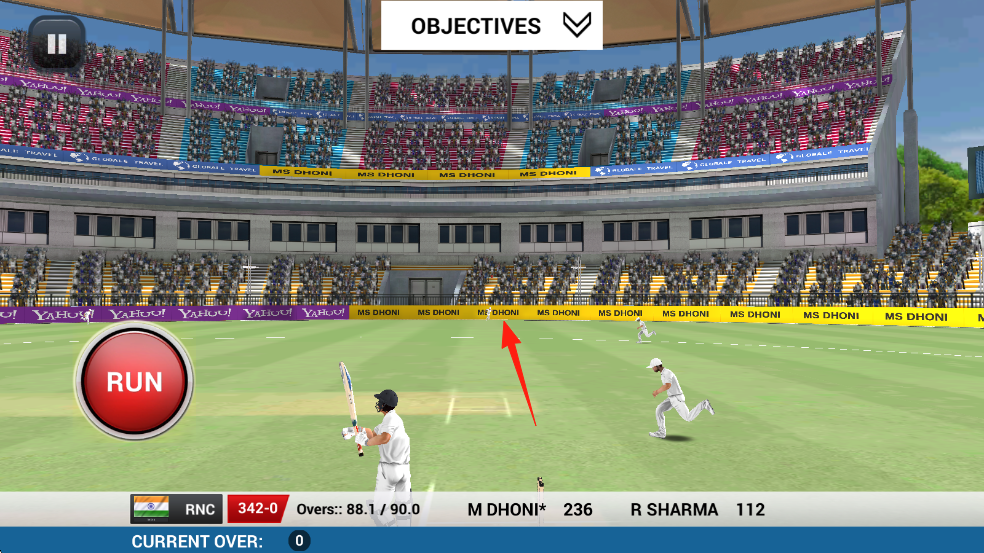 1、开局查看上方【OBJECTIVES】明确目标,操控球员按箭头指引,前往场上对应位置,准备参与板球攻防流程。