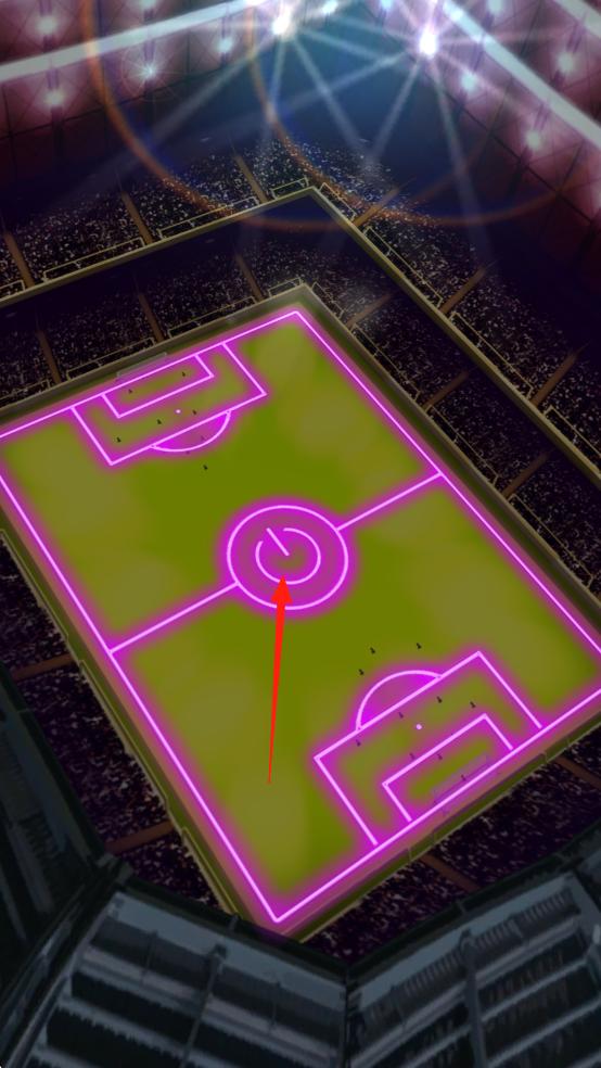 1、打开游戏就会进入开场界面,会有展示灯光的球场,有启动标识可以根据红色箭头指示操作。