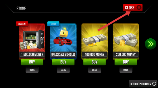 2、若进入商店界面,不想购买物品时,点击右上角【CLOSE】,可关闭商店返回主界面或游戏场景。