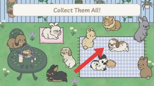 2、画面中是各种可爱兔子(不同品种、外观)在庭院场景互动,属于休闲收集类,核心玩法是收集不同兔子。