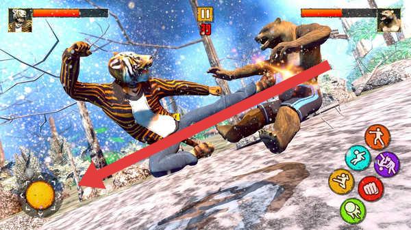 1、多元动物角色:收录狮子、老虎、猩猩等多种勐兽,每个角色拥有专属技能体系与连招逻辑,如老虎的虎啸破风拳、猩猩的泰山压顶,差异化设计提升选择深度。