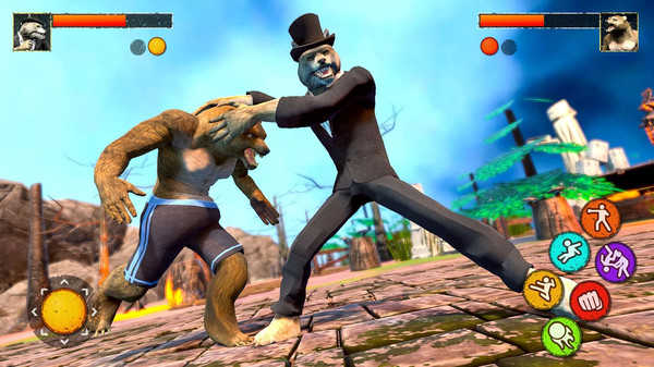 - 动物空手道格斗是一款以动物为主角的3D模拟格斗竞技作品,用户将操控各具特色的动物角色,在经典PK与关卡挑战中施展独特连招,通过进攻与防守的策略切