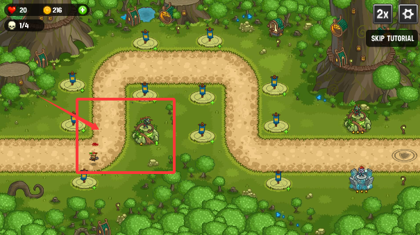 1、游戏开始后消耗初始金币建造基础箭塔,合理布置防御工事阻挡怪物前进路线。