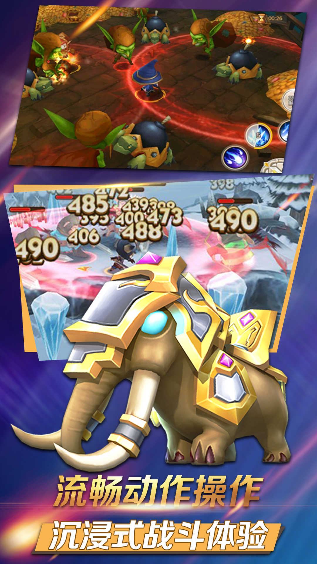 3、战斗时,操控角色,利用“流畅动作操作”,在箭头指示区域释放技能,体验“沉浸式战斗”,击败怪物。