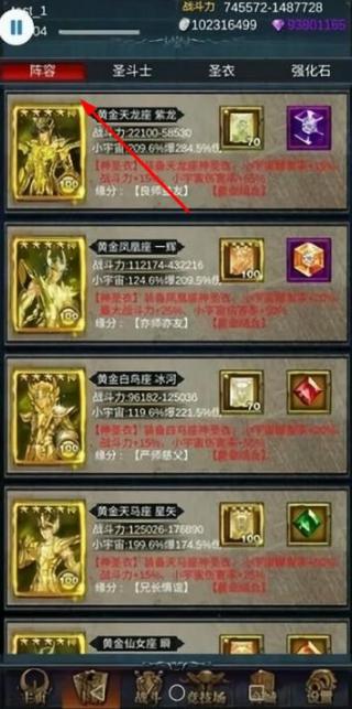 1、进入游戏后,首先映入眼帘的是丰富的卡牌库,从中挑选初始的圣斗士卡牌组建你的首发队伍,像初始较为容易获取的星矢、紫龙等青铜圣斗士卡牌,各有独特技能。