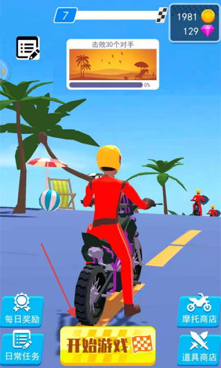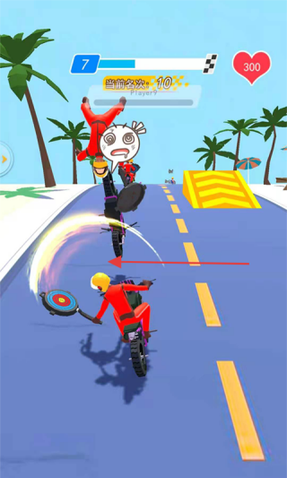 3、驾驶摩托竞速,用武器攻击对手,达成连杀获取奖励。