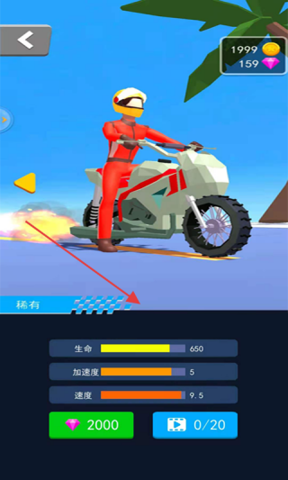 2、进入摩托商店,消耗钻石购买【稀有】摩托,提升属性。