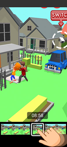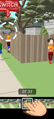 1、社区场景,点击“SWITCH”按钮,触发视角/场景切换,观察人物互动(如街头对话),收集基础情报。
