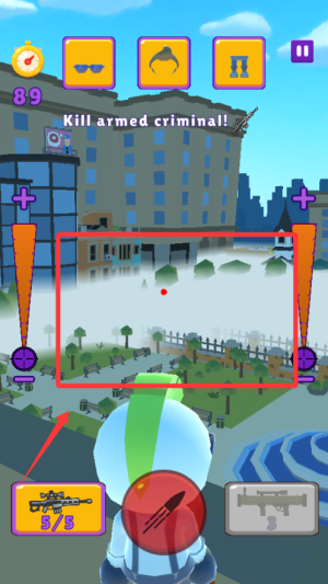 2、瞄准时考虑风向和距离,长按屏幕进入精准模式,可以看到弹道预判线。