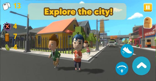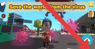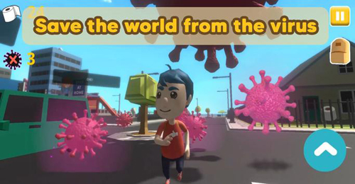 2、户外关卡,按箭头指引,操控角色在“Save the world from the virus”目标下,移动躲避病毒,收集抗疫资源。