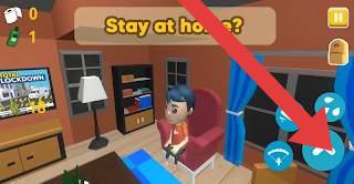 3、居家场景,面对“Stay at home?”选择,点击箭头指向的互动按钮,触发居家防疫剧情,推进游戏进程。