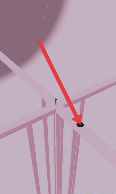 1、在空间场景,操控角色朝箭头指引的黑洞移动,进入后触发重力变换,适应新方向继续探索路径。