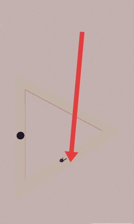 3、三角形场景,跟随箭头让角色向目标点移动,利用重力机制跨越边界,靠近黑点时注意方向切换,完成关卡。