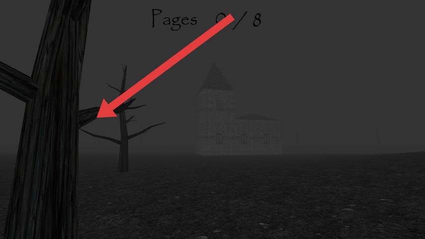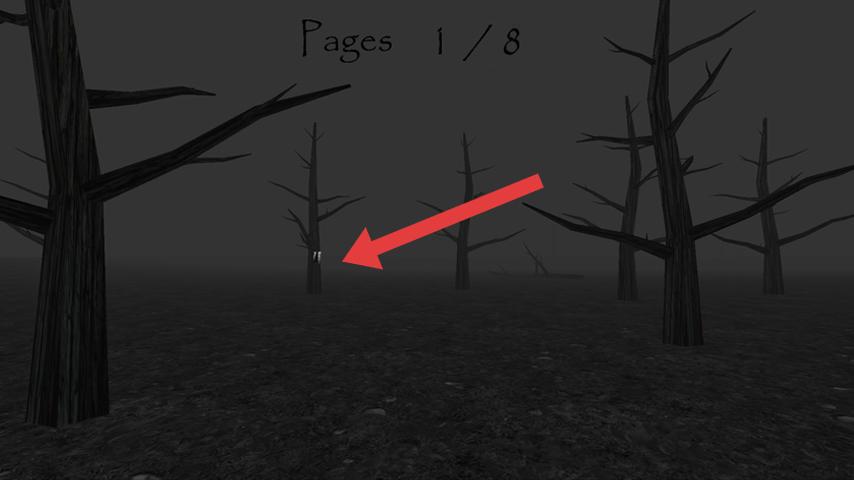 1、进入雾林场景,按箭头指引方向探索,靠近树木等区域,寻找发光页码(pages),收集后更新进度(如0/8→1/8)。