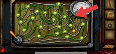 2、线路解谜环节,操控起点道具,引导光线沿绿色线路连通所有节点,使仪表指针归位,完成该场景解谜。
