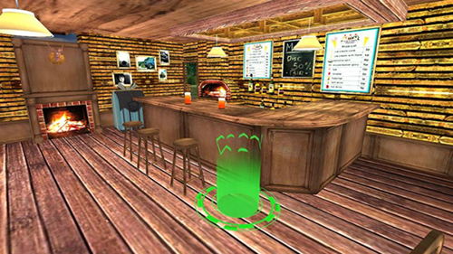 1、进入游戏酒吧场景,留意绿色互动标识区域,靠近后触发交互,可获取道具或推进剧情,探索场景隐藏内容。