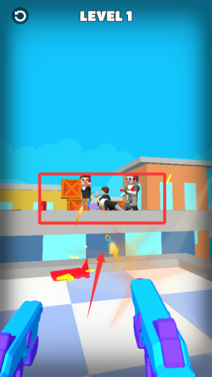 1、游戏开始先熟悉基础操作,滑动控制射击方向,点击目标后可以射击。