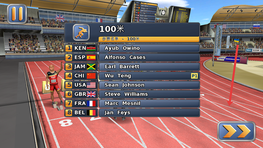 2、进入100米赛道,需要左右快速点击屏幕模拟双腿跑步。