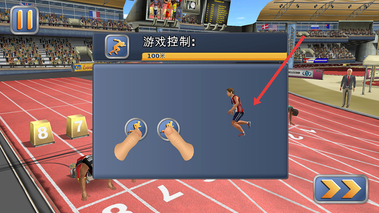 3、每种田径比赛都有操作控制说明,跟着引导操作即可。