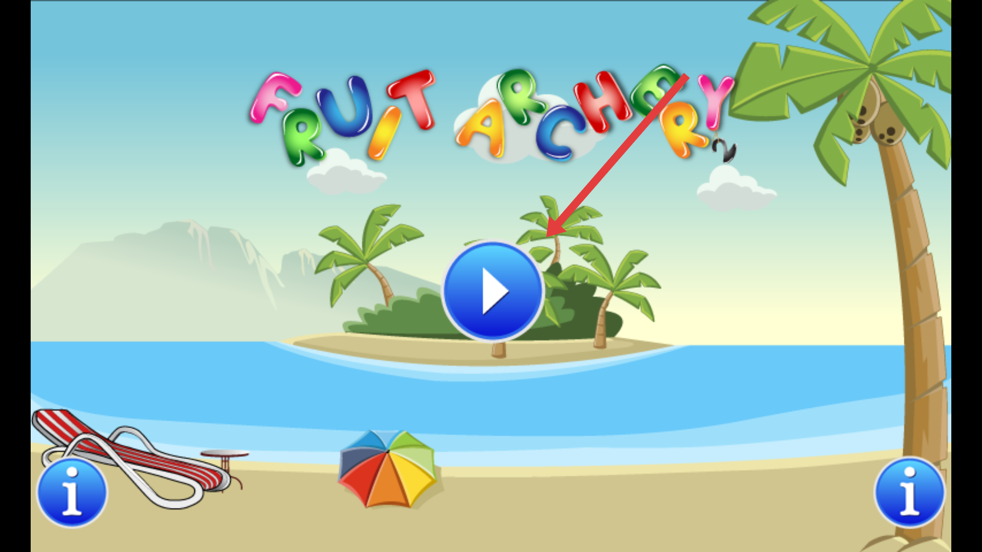 1、点击中间按钮开始,按住屏幕拖动调整射击角度,松手发射箭矢击碎水果。