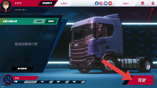 1、进入欧洲重卡车模拟游戏后,操控者需要点击右下角的【驾驶】按钮,开始进行游玩。